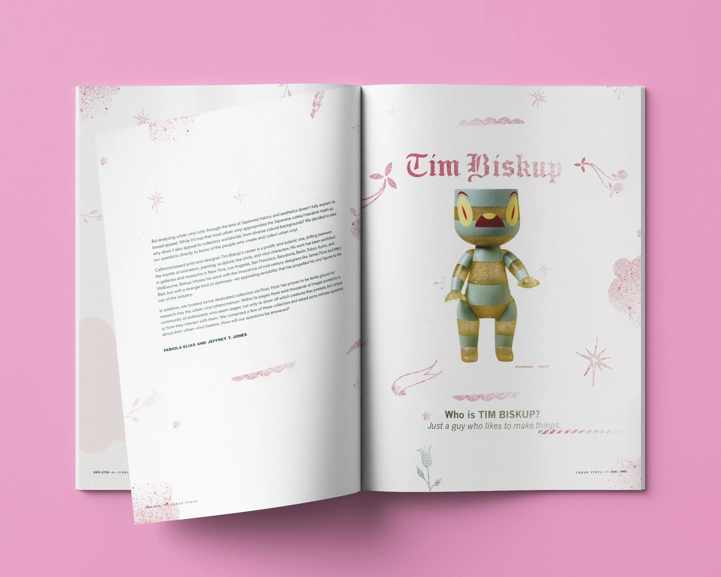 Conceived, wrote, and designed a comprehensive 16-page editorial feature investigating the "Urban Vinyl" art-toy phenomenon for Ninth Letter. The project required balancing journalistic research with visual design that would authentically represent this emerging subculture to a literary audience.