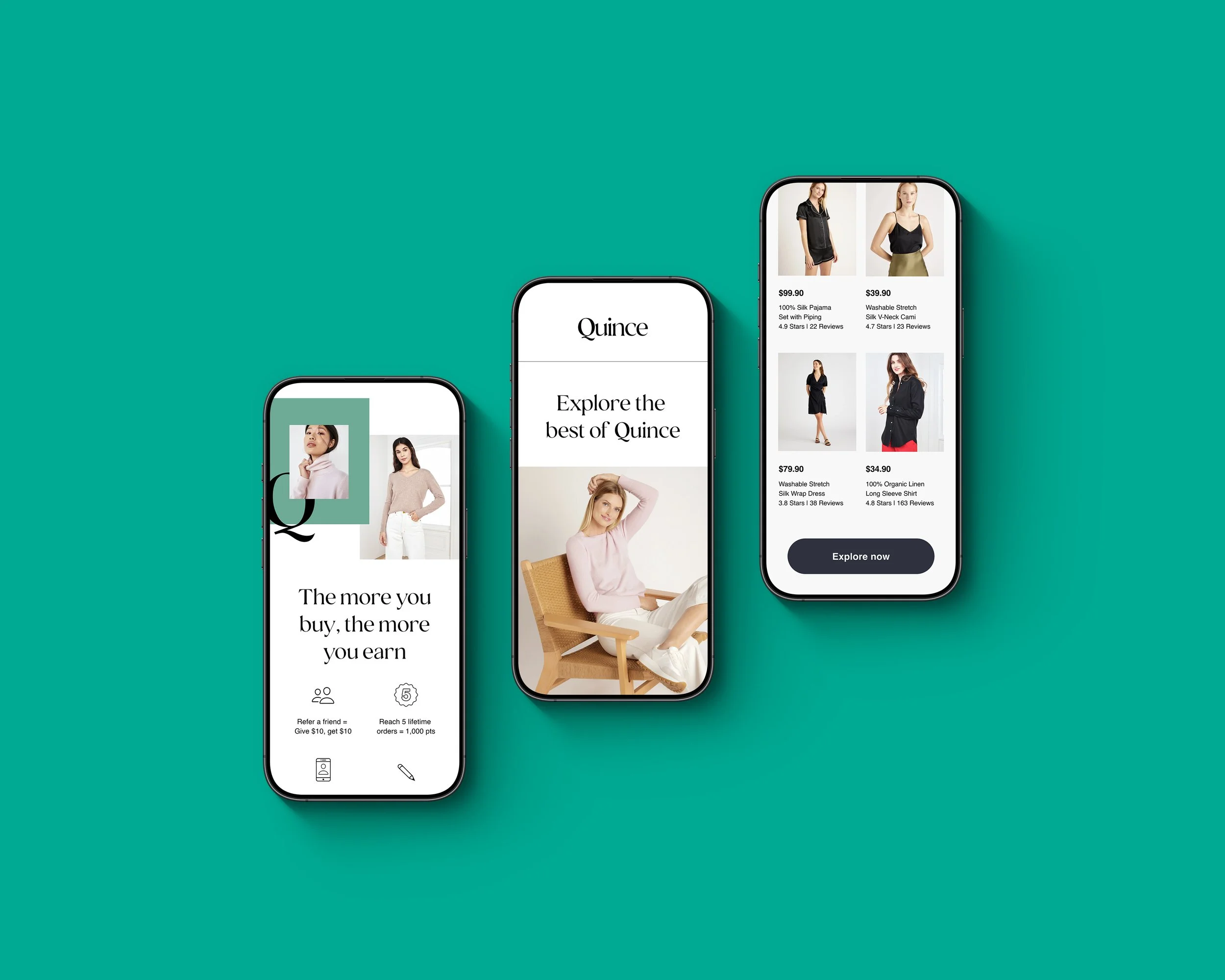 Move beyond template redesign to create a full customer journey from scratch. The system needed to reflect Quince’s minimalist, “inexpensive expensive things” philosophy while driving acquisition, second purchase, and re-engagement in a competitive DTC market.